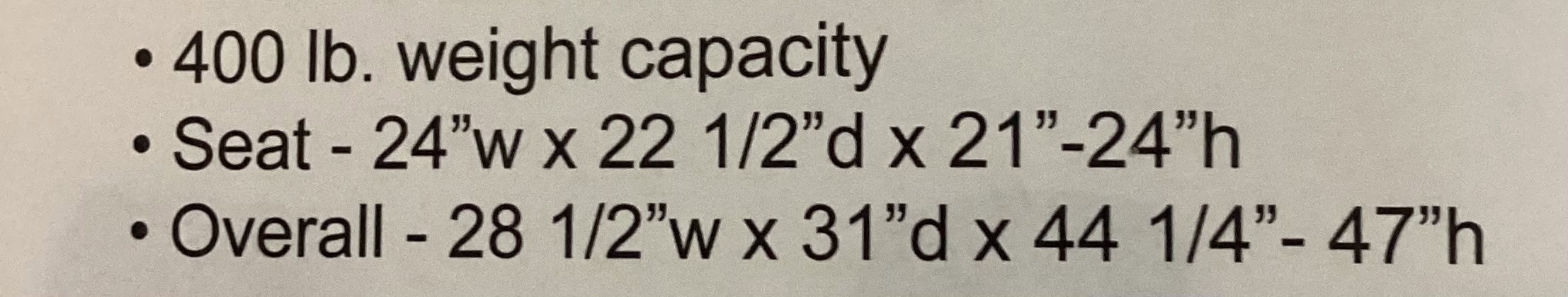 400 lbs. weight capacity