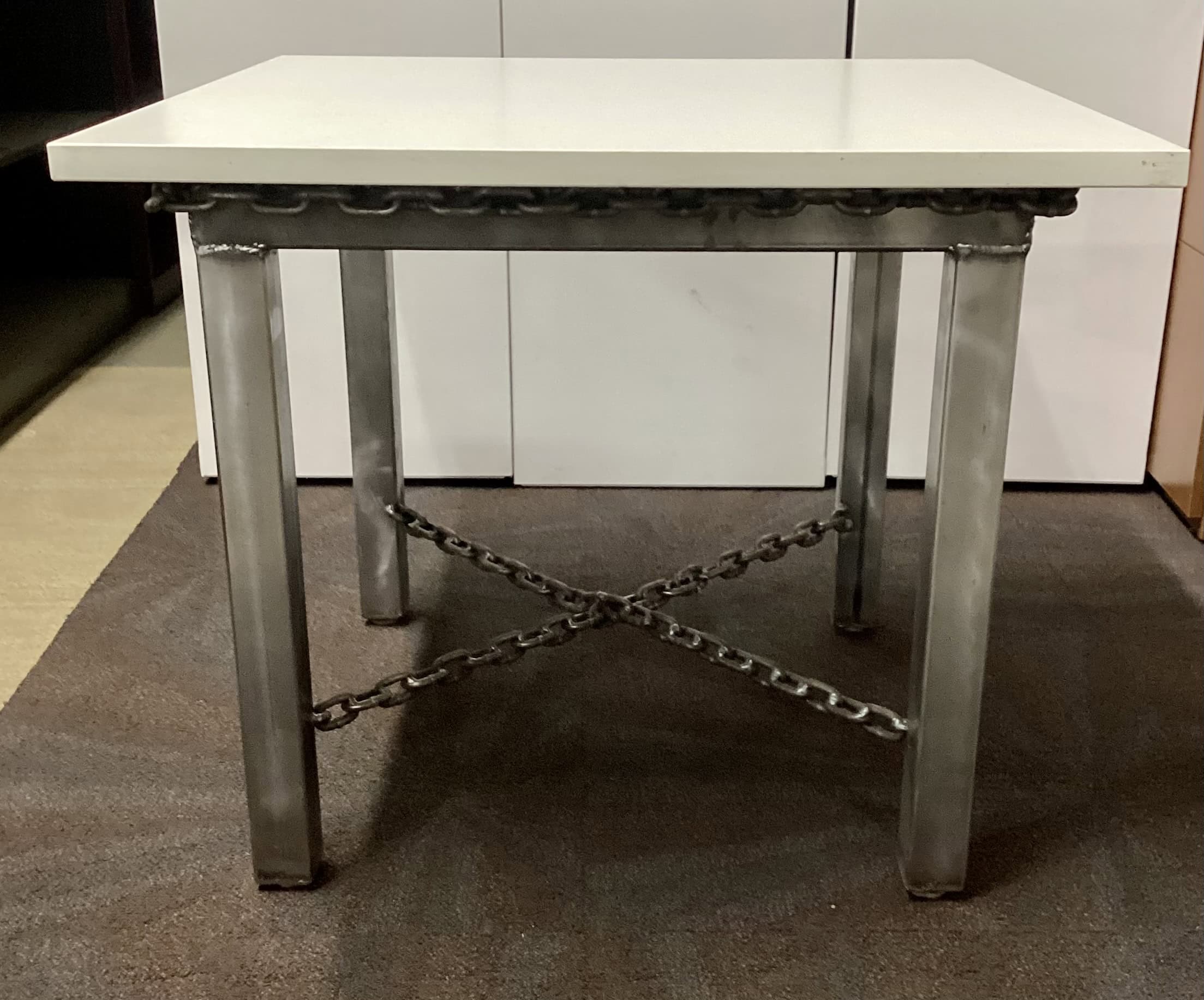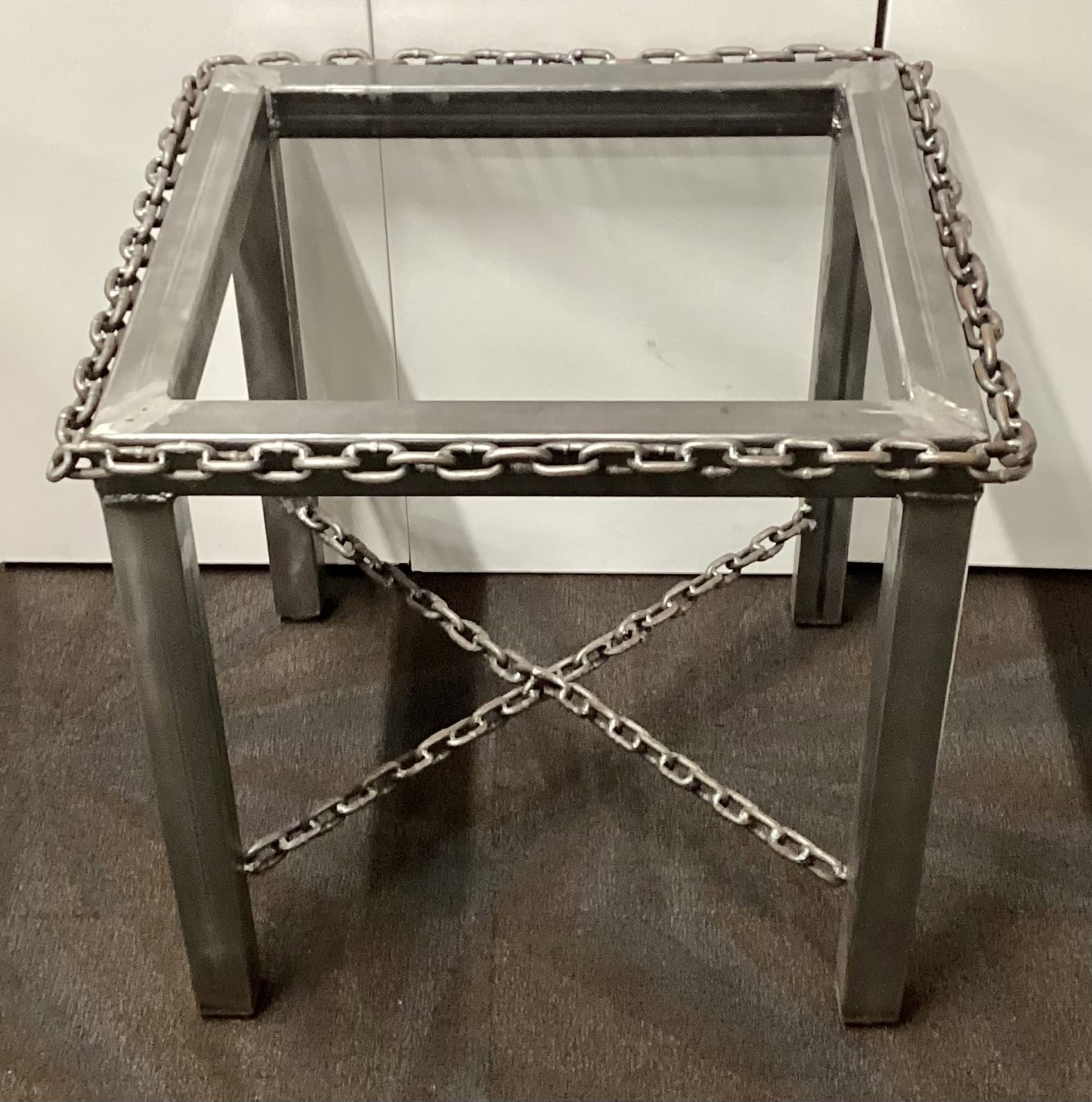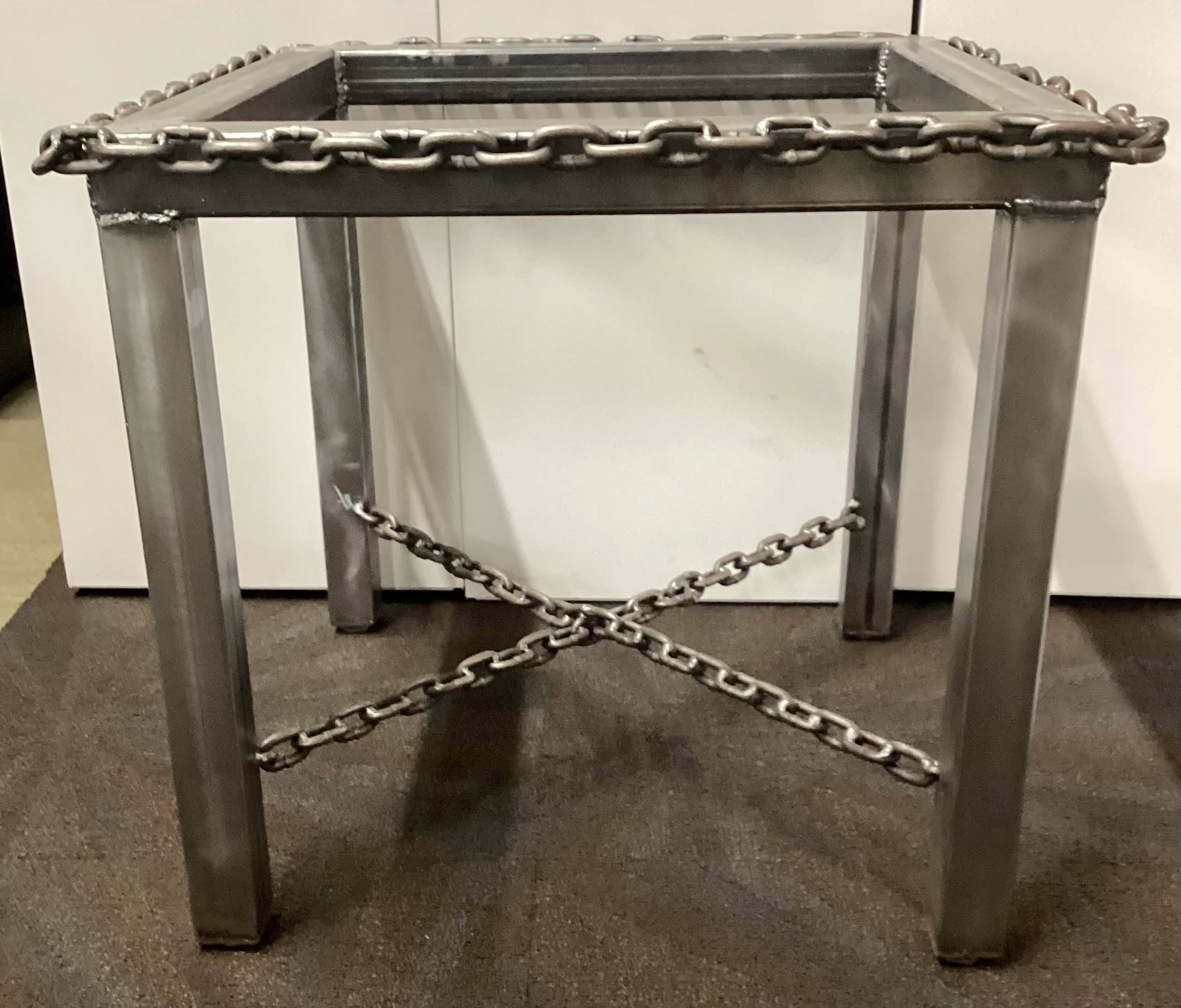 Custom Steel Base with unique chain-style edging and cross support.