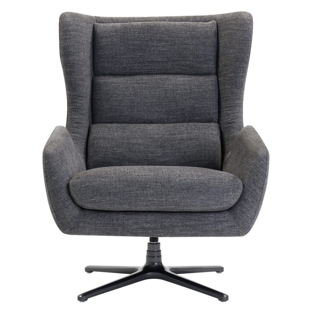 The Lincoln features a high backrest with layered cushioning for superior support and relaxation. Its wide seat and contoured armrests enhance comfort, while the sleek black metal base with swivel functionality adds versatility and stability. Perfect for executive offices, reception areas, or quiet lounges, this chair delivers both style and substance.